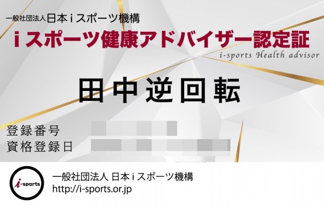 「iスポーツ健康アドバイザー」の資格を持つ田中逆回転(@TKgyakukaiten)です。