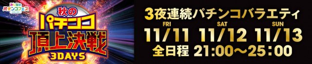 昼は iスポーツ日本シリーズ、夜は『秋のパチンコ頂上決戦 3DAYS』が開催される、パチンコ業界大盛り上がりの週末になりそうですね!