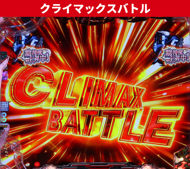 導入時はタイトルの色がポイントで、タイトル赤が10回と最も多く出現。また、タイトル出現時にボタンを押してクライマックスバトルに発展するとチャンスとなるが、実戦ではわずか1回しか出現しなかった。