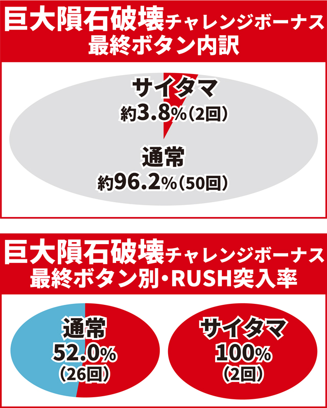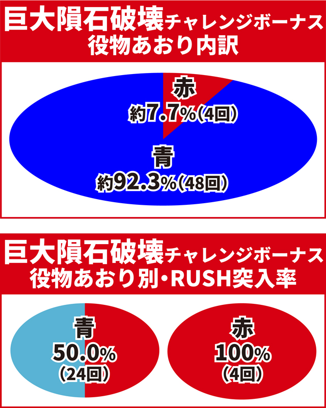| 巨大隕石破壊チャレンジボーナス ヒーロー参戦・種類内訳&RUSH突入率 |