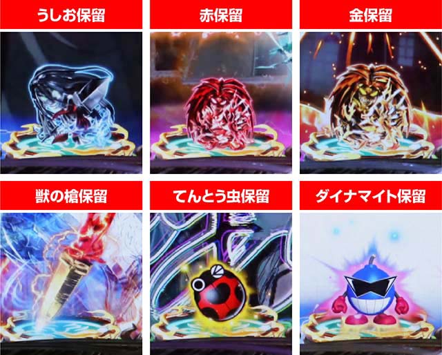 やはり赤保留以上の出現が望ましく、主役の両者が揃う「うしおととら保留」や激アツの合図「獣の槍保留」であれば、大当りの信頼度はさらに上昇。