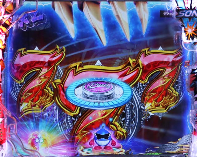 ここでの大当りは「二体で最強BONUS」となり、1500個の払い出しはもちろん、最強RUSHも継続。加えて消化効率も大幅に上がるため、既存の機種の中でもトップクラスの出玉スピードとなるぞ。