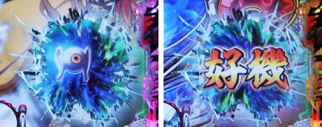台枠が激しくフラッシュする演出で、発光する色に注目。白点滅では期待薄となるが、赤点滅なら4回に1回は大当りに期待できる。