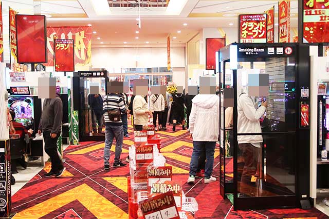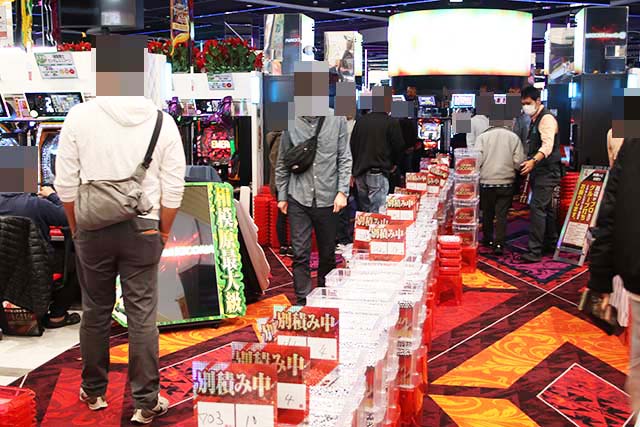 パチンコもパチスロも次々と埋まっていき、あとは遊技開始の合図を待つだけ。