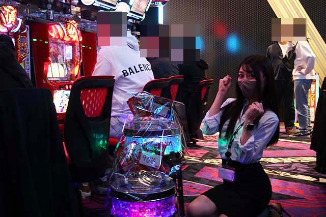 一斉に響き渡るメダルと玉の音。各機種のBGMも相まってホール内のボルテージはいきなりMAX!