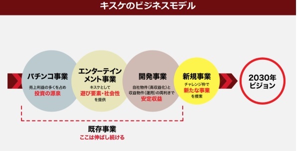 そのご経験も反映されていると思うのですが、トップメッセージに【「財務基盤」「人的資本」を共有し、キスケブランドを 磨いていくとありました。こちらはパチンコ事業の優秀な人材が他事業の開拓、 投資などを行うための準備ということでしょうか?