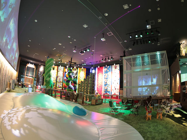 左:キスケBOX3FのKIT PLAY内。子供用のプレイルーム。19種のクライミングや電動カート等充実した遊び場が提供されている