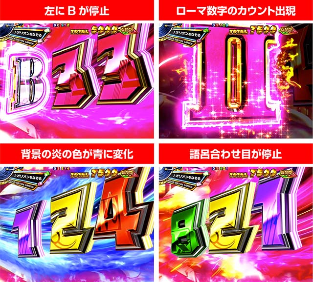 前半パートは時短4回転の即当りゾーンとなっていて、4カウント以内に図柄が揃えば演出成功です! 20種類以上ある違和感演出の発生にも注目。