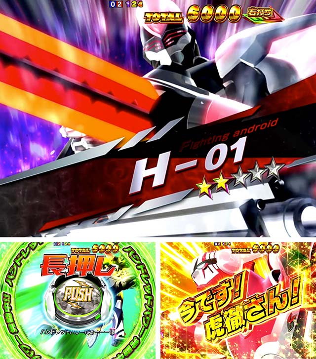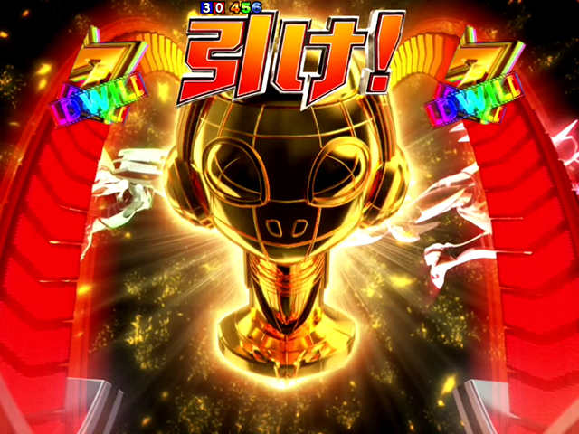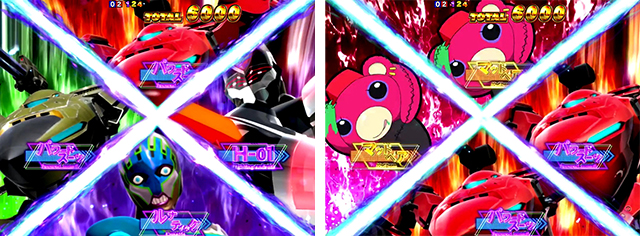 SPリーチ前などに発生する大チャンス演出。ヒーロー全員集合ver.は超激アツで写真に収めたい!