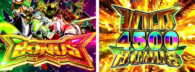 「WILD BONUS」は約4500個(10R×3回)+RUSHチャレンジを獲得!「BONUS」 は出玉約1500個獲得で通常に戻ります。