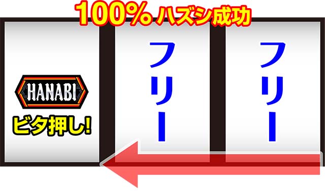 BARを狙ったら停止形にかかわらず右リールをフリー打ちしよう。右リールに止まった絵柄によって中リールの目押しが必要となる。