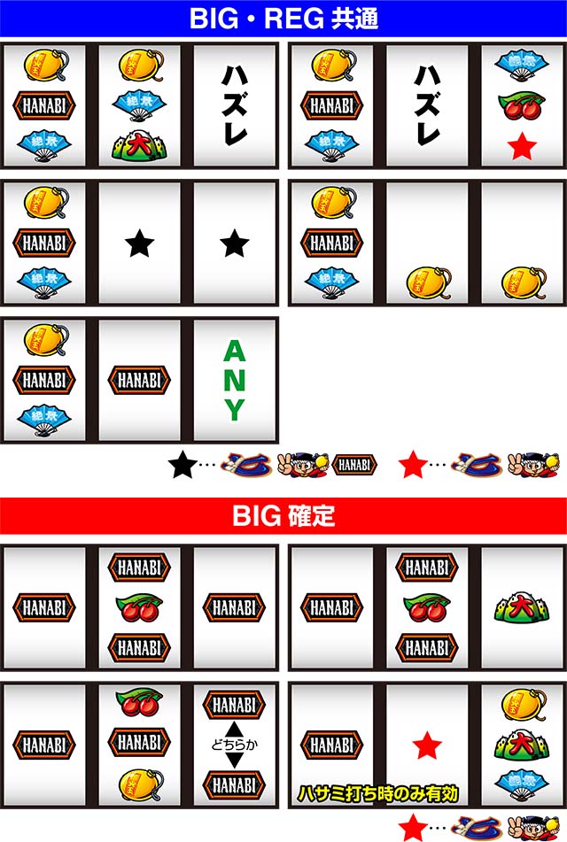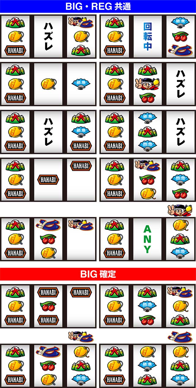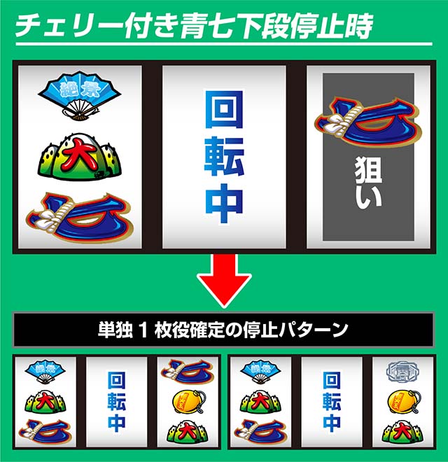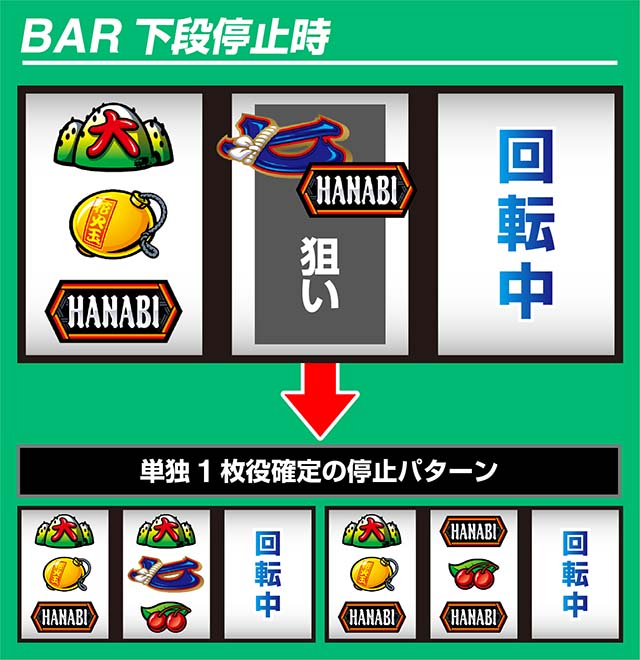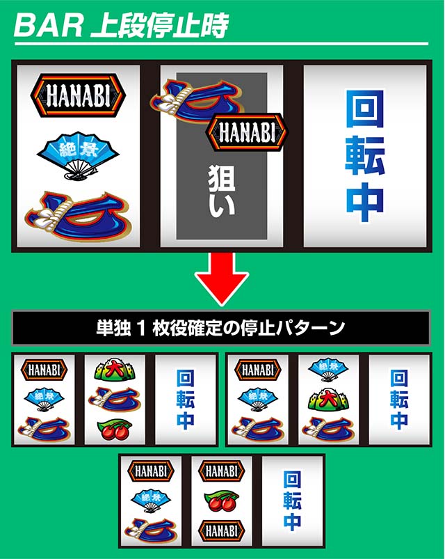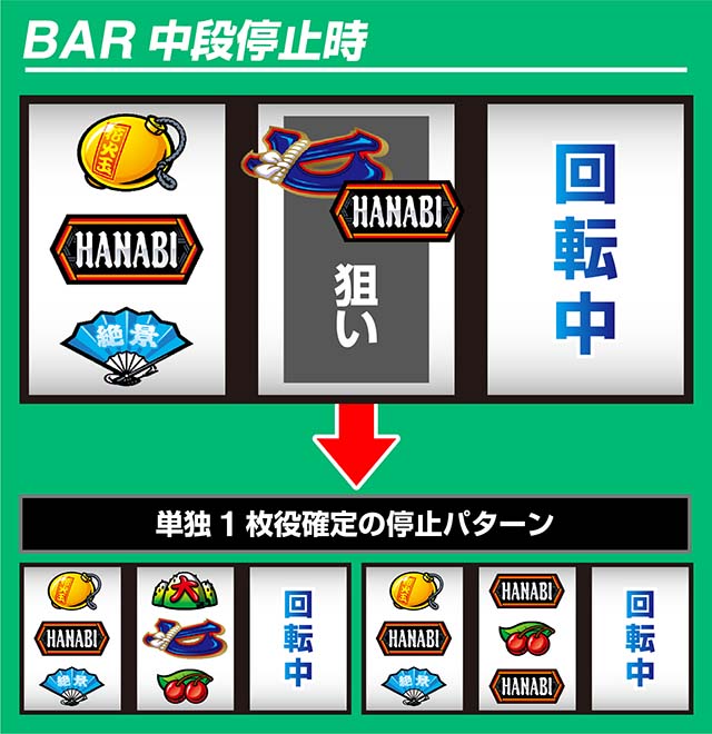 花火百景ステージ中は単独1枚役を判別することで出目によりアツくなれる。