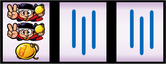 三連ドンちゃんの一番上のドンちゃんが下段に停止した場合は山の可能性あり。右リールをフリー打ちし、山が下段に停止したら中リールにも山を狙ってみよう。