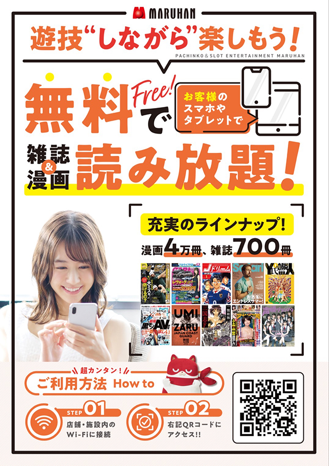 マルハンフリーWi-Fiにつなぐと、スマホでWEB漫画・雑誌が読み放題ってこと?