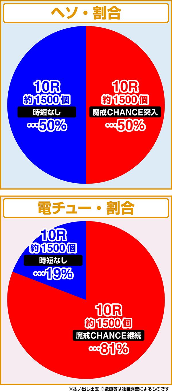 振り分けは初代とほぼ同じ。初当りの50%で「魔戒CHANCE」に突入し、81%で右打ちがループします。