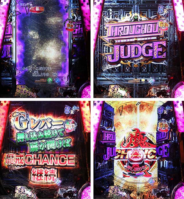 シャッター閉鎖のあおりが発生すると終了のピンチ。完全に閉まるとジャッジ演出が発生し、Gレバーを押し込んで扉が完全に開けば魔戒CHANCE継続濃厚となります。