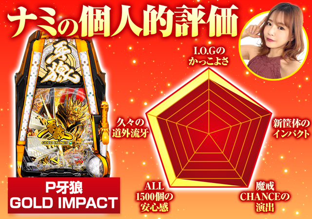 以上が『P牙狼GOLD IMPACT』のスペックや注目ポイントになります。今回も出玉力・演出面などを踏まえて、主観のレーダーチャートで評価してみました!