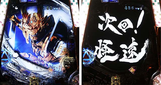 巨大ジンガに勝てば魔戒CHANCE継続。勝率は37%と厳しいが、初当り時と同様に、攻撃パターンで継続期待度が大きく変化する。素体ホラー攻撃の発生に期待したい。