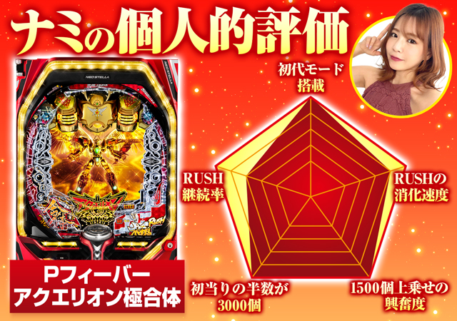 以上が『Pフィーバーアクエリオン極合体』のスペックや注目ポイントになります。最後に今回も主観強めのレーダーチャートで評価してみました!