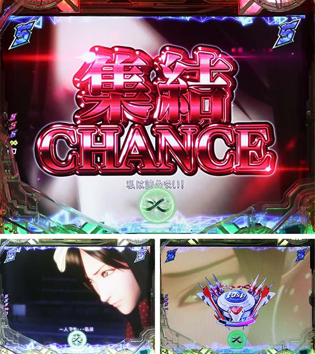 また、タイトル表示のタイミングで役物が閉じれば、上位パターンのインフィニティチャンスSUPERに突入。こちらは全回転リーチも含まれる激アツパターンだ。