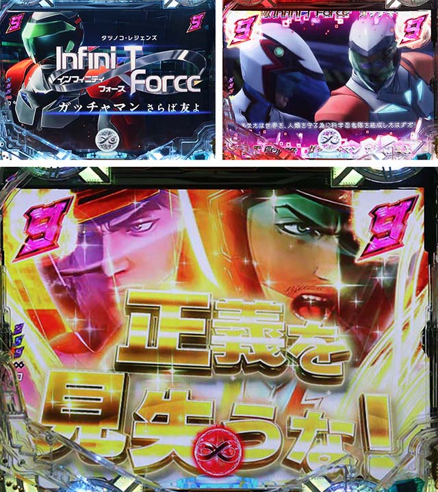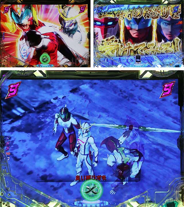 劇場版 Infini-T Forceのワンシーンが展開。信頼度は高めだが、こちらも色変化や図柄の炎化、シェイクビジョンといったチャンスアップの出現が重要となる。