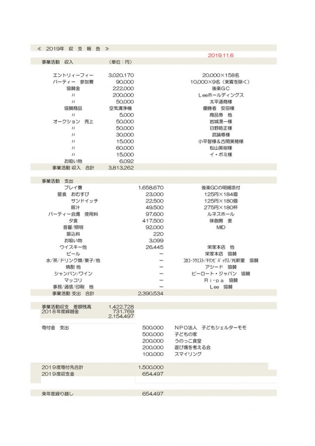 中断しても10回目を数えるチャリティーコンペやオークションは、未来を担う子供たちへの糧となる。