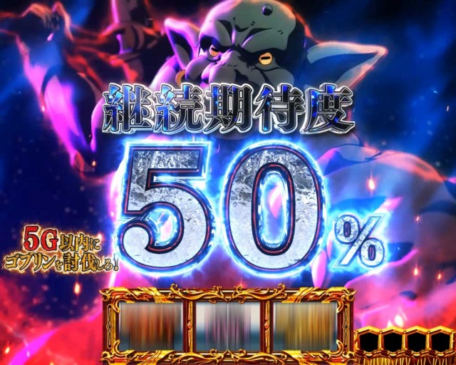 「プレミアムゴブリンスレイヤーRUSH」は初回セット継続のAT初当りを得ることができるだけでなく、裏ストック抽選や1/8で上位AT直行の可能性がある本機の重要トリガーです。