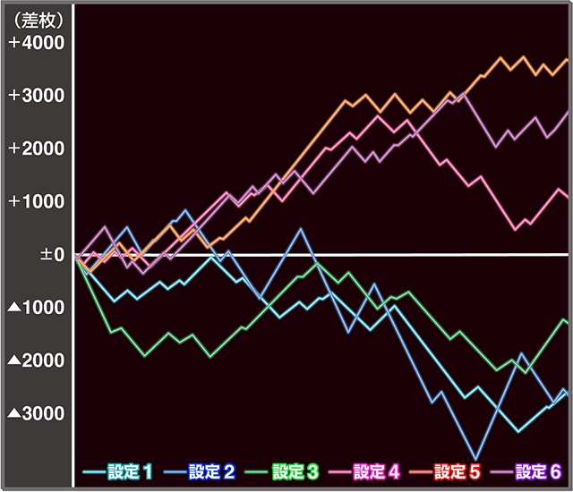 今までのGODシリーズと比べても破格に初当りが軽い! 引き戻しも含めとにかくハマらず初当りを引きまくるといった印象です。やはり設定看破をする際はまず第一に初当り確率に注目するのがいいでしょう。一撃でそこまでの伸びはなかったにもかかわらず、綺麗な右肩上がりで出玉が増えていったので設定6はかなり安定したグラフを描くのではないでしょうか。