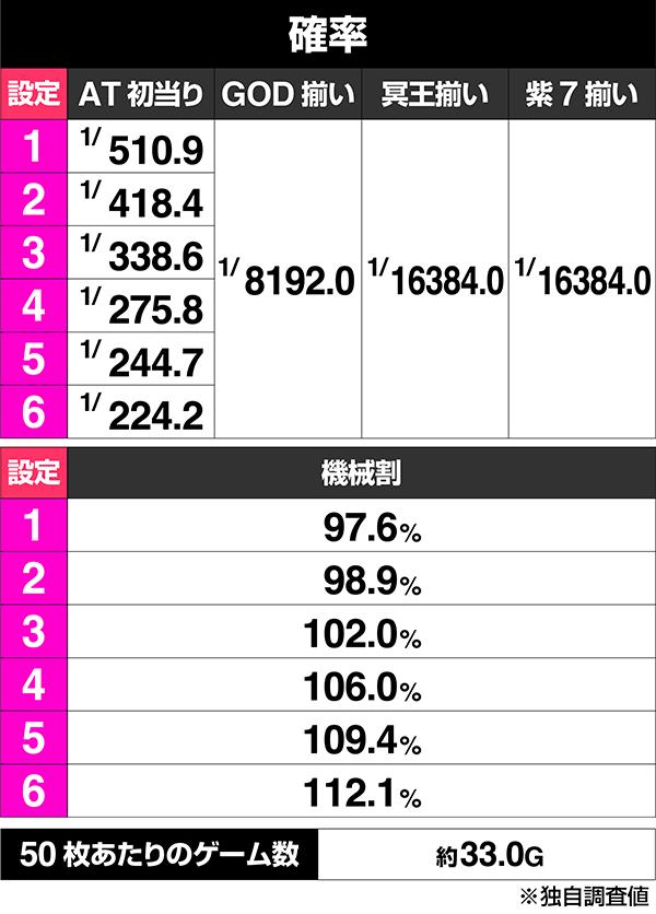 ただし、今までのGODシリーズ同様、大量出玉のトリガーとなる「確定役」には設定差がないため、ここのヒキ次第では低設定でも夢があるし、逆に高設定で初当りは引けているけど出玉が伸び悩む…といった、GODシリーズあるあるも健在となっています。
