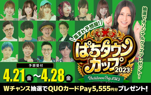 気になる企画内容は、総勢15人のぱちタウンタレントがGW期間中に全国各地のホールへ実戦来店。実戦中にポイント獲得の順位を競い、優勝するタレントをファンの皆様に予想してもらうというもの。