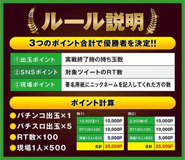 出玉・SNS・現場の3ポイントで優勝者を決定!