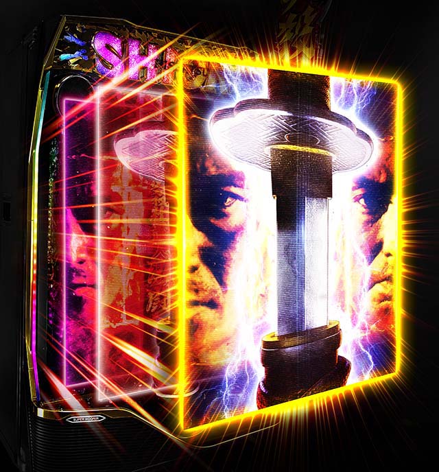 名前の通り、レイヤーのように重ねられた新液晶。液晶と液晶の間にギミックが仕込まれています。液晶の大きさの迫力もあいまって、今までのパチンコ機にない映像を楽しめそう。