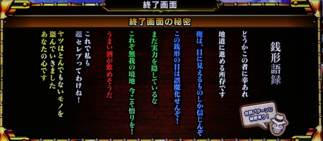 また、上記の銭形語録とは別に、ICPO24時のセリフがAT終了時まれに発生するようで、こちらもセリフの内容で設定を示唆しています。