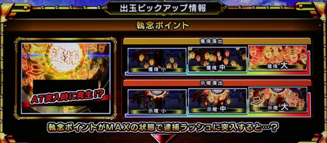 執念ポイントはMAXまで貯まった状態でATに当選すると発動し、成功確定のデカチャンスとBIG GAMEが濃厚になります。