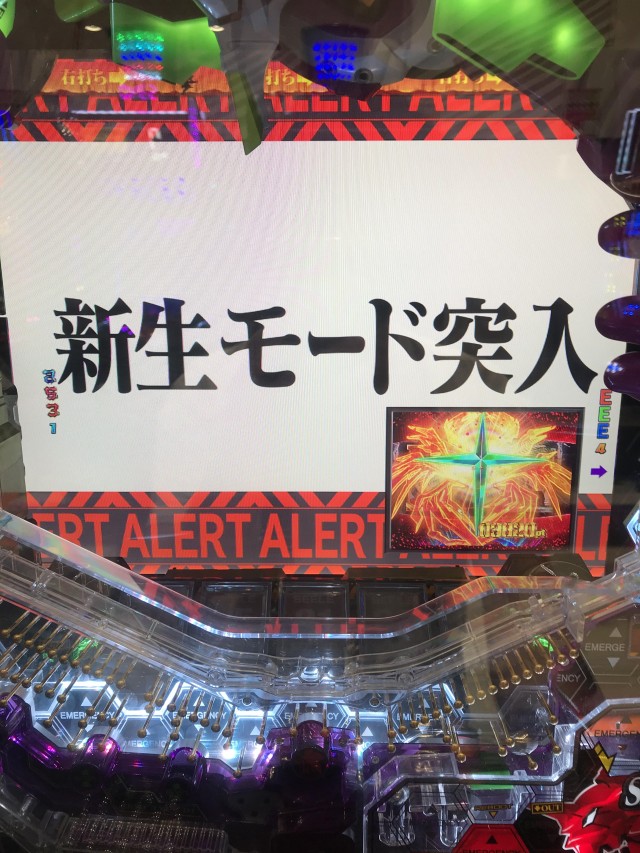 シト新生には、2R確変当選時に保留内(特図1)で10R確変に当選すると突入する、新生モードというプレミアムモードがあります。