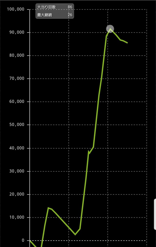 そんなこんなで昼過ぎまでに初当り回数8回、突破回数は0回。右肩下がりのグラフで、諭吉が2人旅立たれました。昨日の話です(苦笑)。
