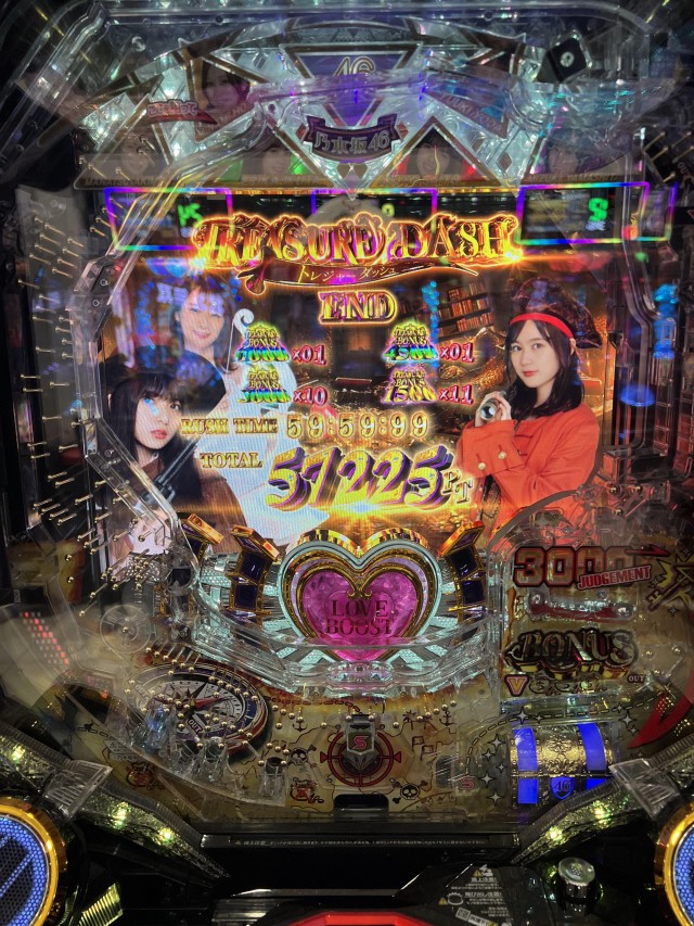 昼過ぎには演者さんの来店も終わったので、福島へ戻って別の演者さんの所に顔だけ出そうと向かい、着いたらちょうど取材中だったから群馬の負けを癒そうと『乃木ぱ(トレジャー)』を打ったら1500円で先バレ(赤)! 大当りからの一撃50000発overでまさかの大勝ち!!