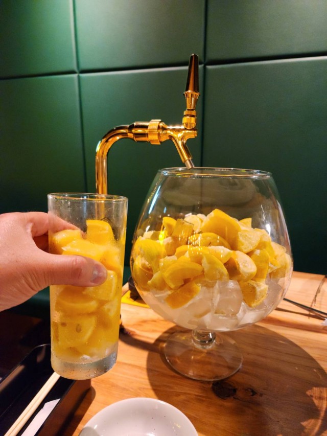 松江駅の焼肉酒場れもん。国産のレモンをふんだんに使ったレモンサワーや拘りの食材を使用。焼き肉店を経営していたノウハウもあり、平日でも賑わいを見せている