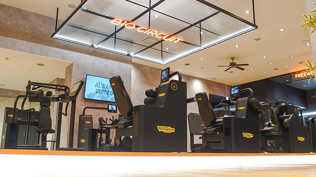 最新のバイオサーキットマシンを取りそろえたフィットネスジム。アフターコロナの体力づくりにはうってつけだ