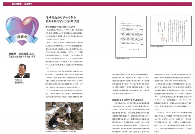 三栄は企業経営のみならず、地域の災害派遣にも力を入れており、山陰の災害ボランティアでも表彰され地域に対する貢献度も高い。