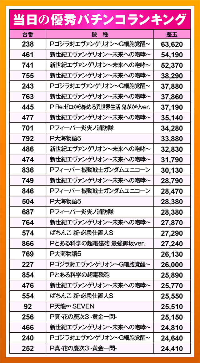 『新世紀エヴァンゲリオン〜未来への咆哮〜』に好成績をマークする台が多数。なんと、3割以上が10,000ptオーバー!