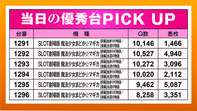 6台設置の『SLOT劇場版 魔法少女まどか☆マギカ[前編]始まりの物語/[後編]永遠の物語』も高稼働。