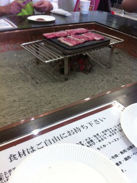 そこでは客が用意した肉や野菜を焼くことができ、サイダー片手に店内で遊技をしている客を見ながら焼いた肉が食べられた。