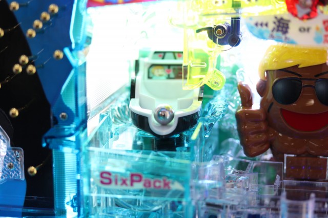 左右に動く「高級クルーザーギミック」。玉がタイミングよく真ん中を通過すると、「SixPackステージ」へ。また「高級クルーザーギミック」通過失敗後も、役物の下部の「サイバードギミック」によるイレギュラー入賞のチャンスがあります。