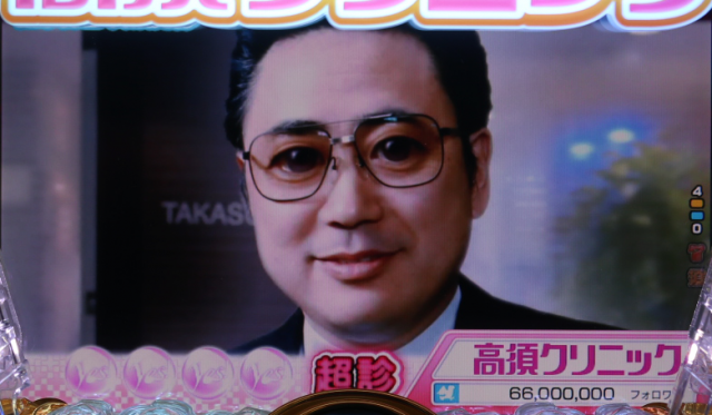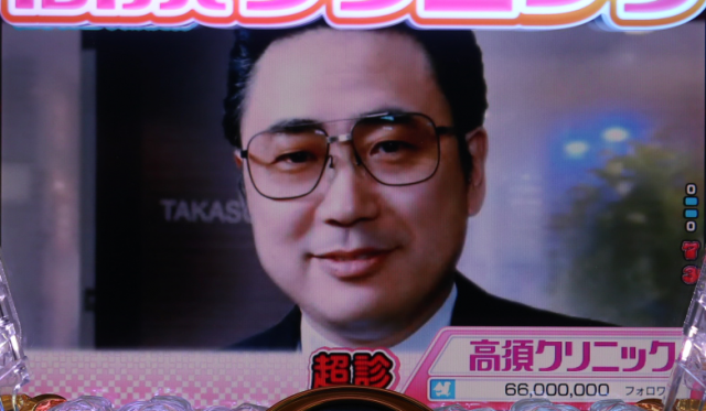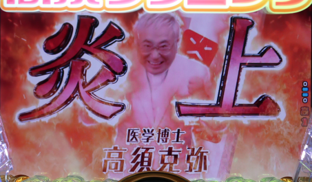 液晶暗転から発展する本機最強リーチ。ボタン長押しで高須院長と心を通わせ、支援してくれれば大当りです。