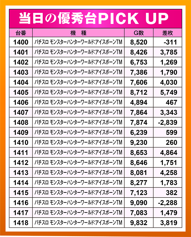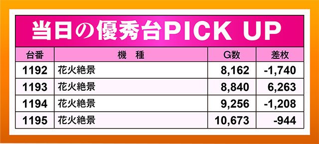 28台中8台が20,000pt超をマーク。この日のパチンコでもっともスポットライトを受けていた機種のひとつといっても過言ではないだろう!