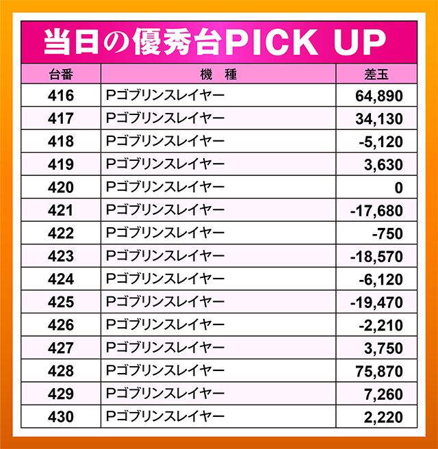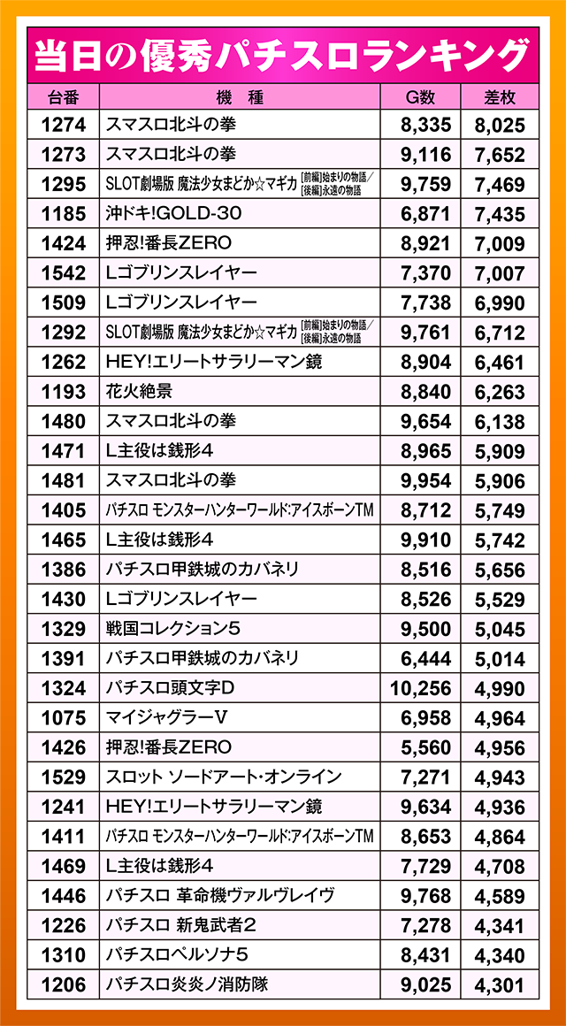 この日は多くのスマスロが好成績を残し、「スマスロ北斗の拳」と「Lゴブリンスレイヤー」が7,000ptオーバー。