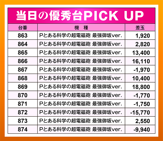 「Pとある科学の超電磁砲 最強御坂ver.」は12台中4台が10,000ptオーバー。
