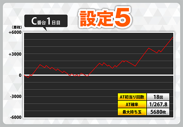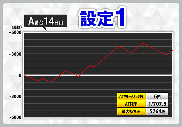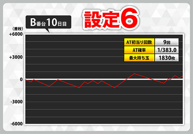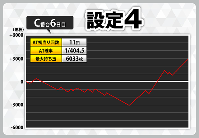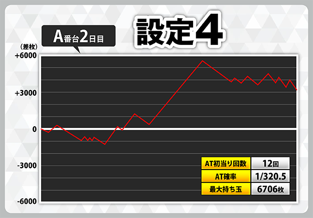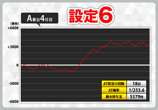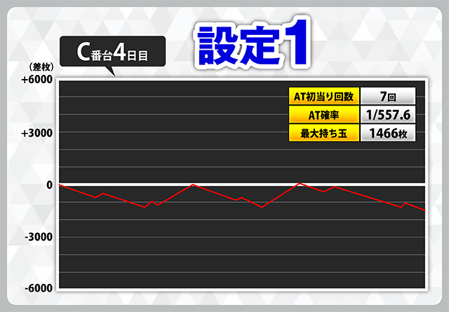 | 3 | +4926枚(設定6) | −3322枚(設定1) |