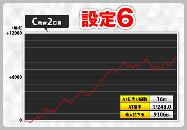 | 1 | +8936枚(設定6) | −3648枚(設定1) |